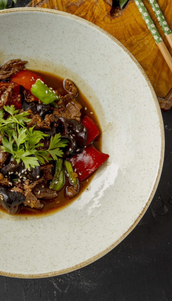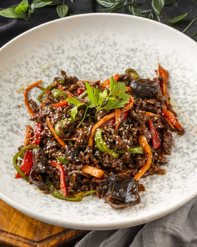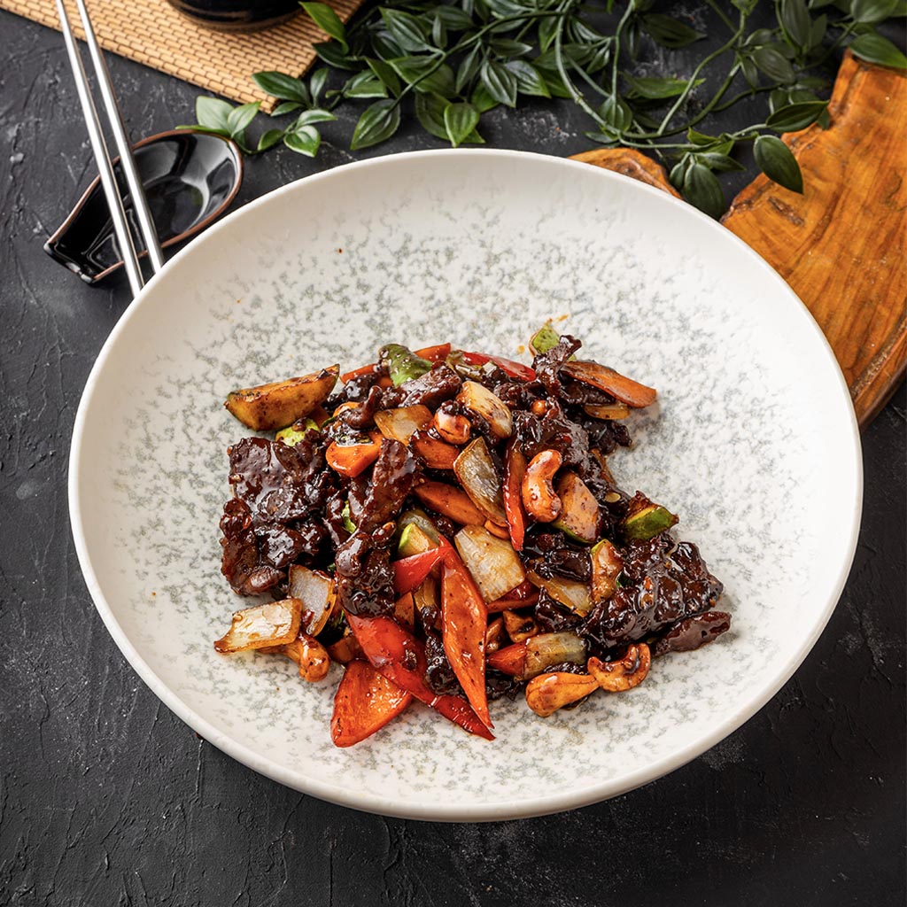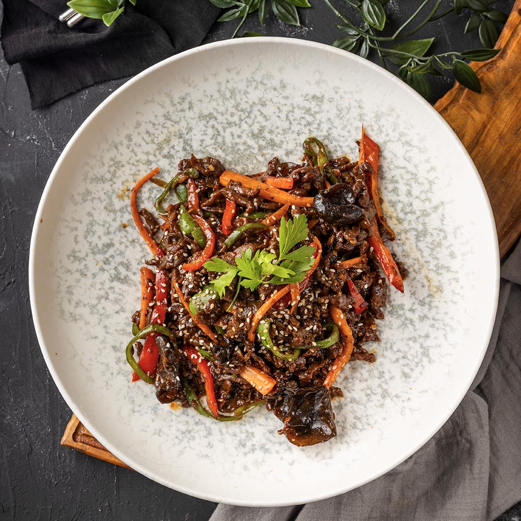 Acılı Mantarlı Dana Eti İçindekiler:deniz mantarı, kültür mantarı, dana eti ve özel sos Fiyat:750.00 TL