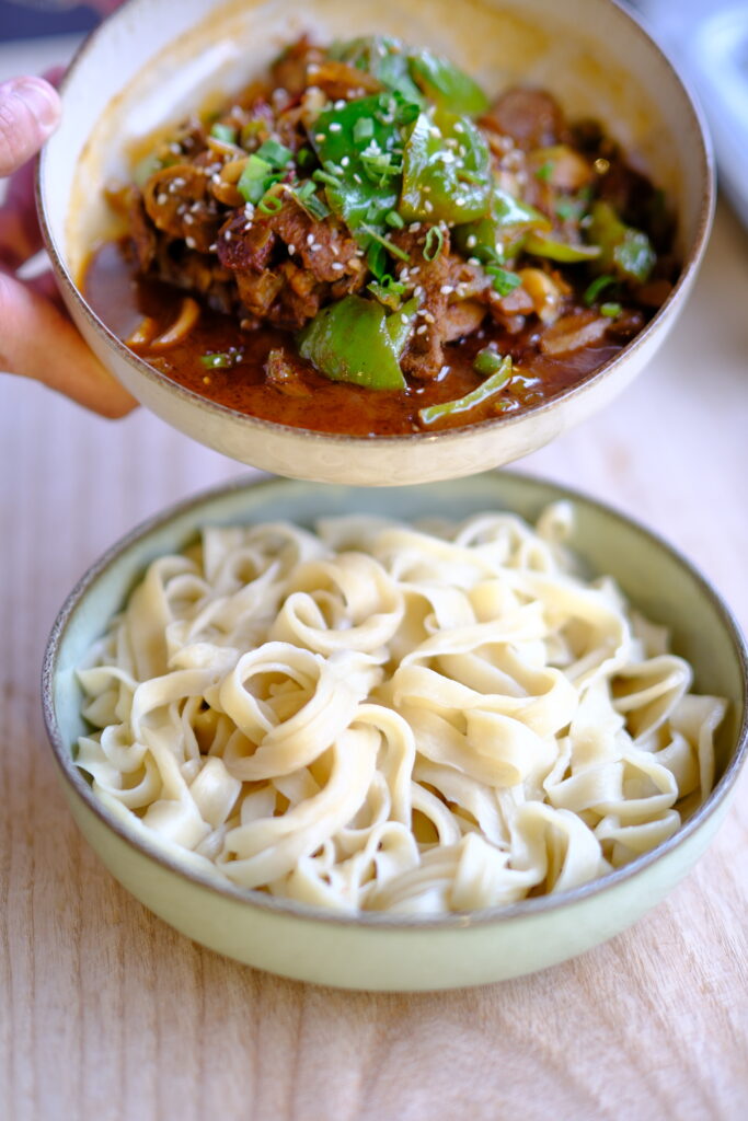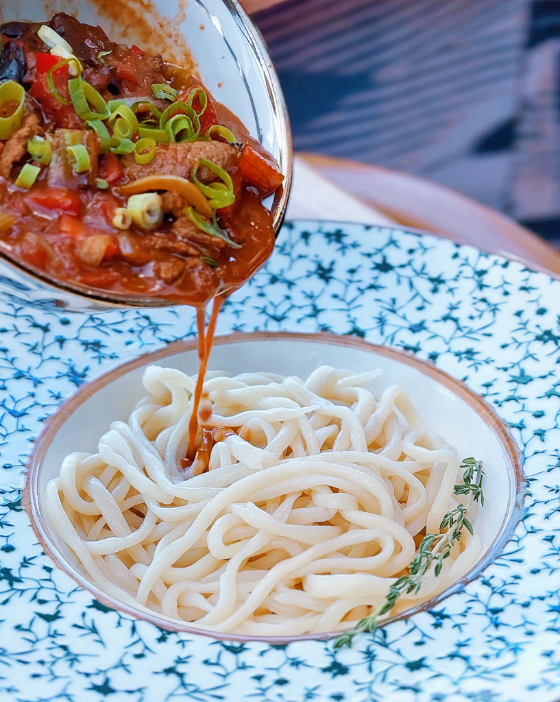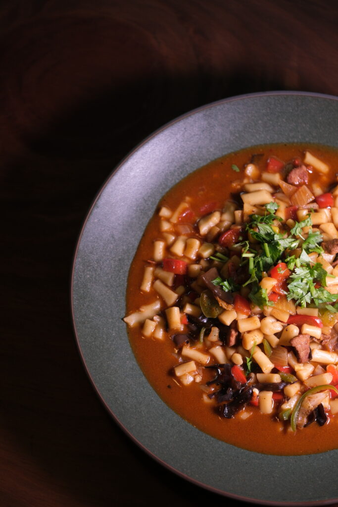 İçindekiler:karides, dana eti ve tavuklu Uygur makarnası